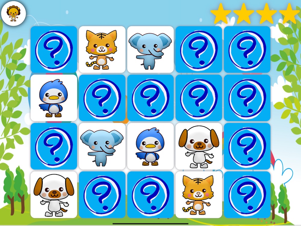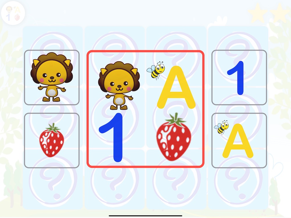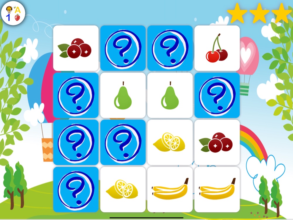 Chaque retournement de carte est accompagné d'un son indiquant ce qui est représentée sur celle-ci, ce qui permet à l'enfant d'associer l'image à son nom.